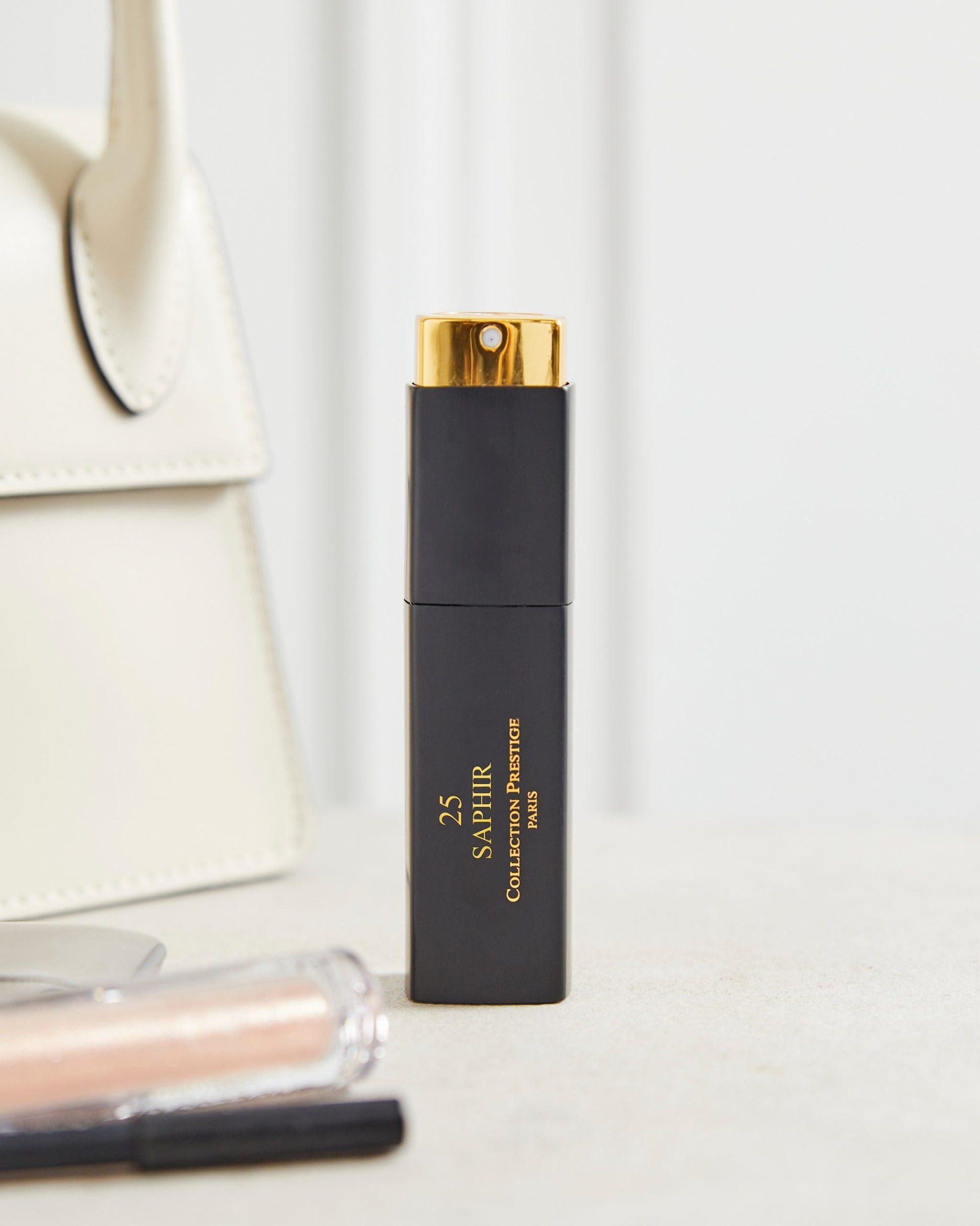 Ontdek de schitterende wereld van Saphir, een verleidelijke geur met topnoten van passievrucht, perzik, peer, framboos, cassis en zand. Laat je betoveren door het hart van lelietje-van-dalen, rustend op een basis van muskus, sandelhout, vanille, patchouli en vanillebloem. Laat jezelf onderdompelen in deze weelderige en betoverende geurervaring.