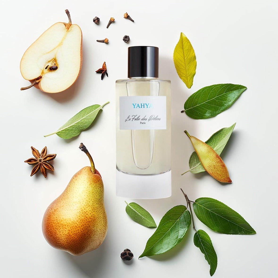 Yahya van La Folie des Délices is een ware explosie van frisheid en sensualiteit die opent met een sprankelende mix van peer, lavendel, munt, bergamot en citroen, waardoor een levendige en energieke introductie ontstaat.